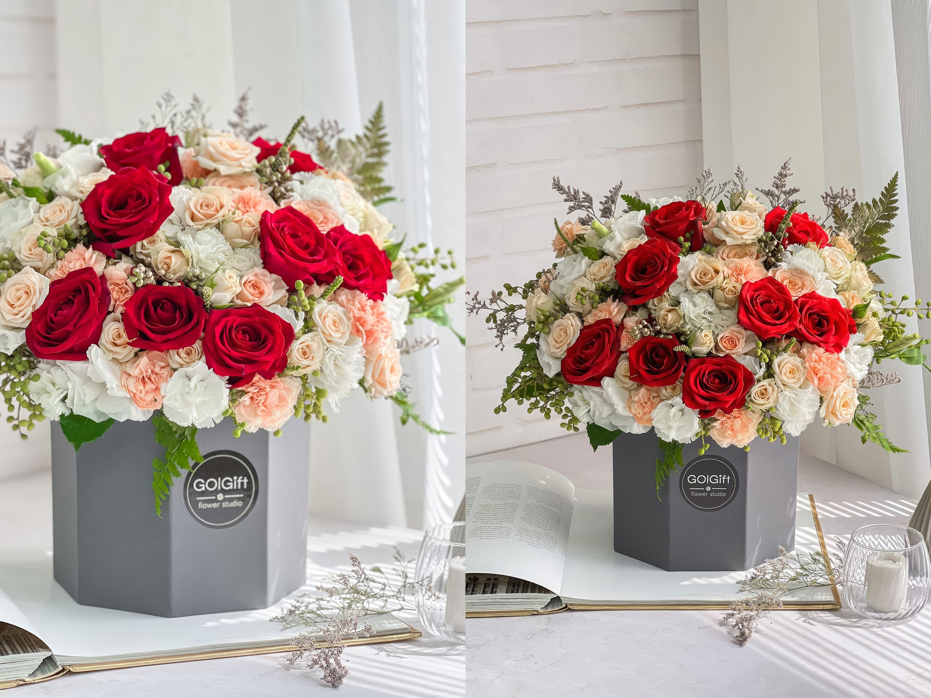 I developed a visual brand identity that highlights the delicate yet modern nature of their business. This included a color palette featuring a specific shade of red reminiscent of roses, along with gold and black and white, and the implementation of a minimal, modern sans-serif typeface. The logo mark cleverly combines four "G"s (for "Gol," the Persian word for flower) to create a stylized floral image. This branding blends floral elegance with a contemporary aesthetic, positioning GolGift for success in the international market.